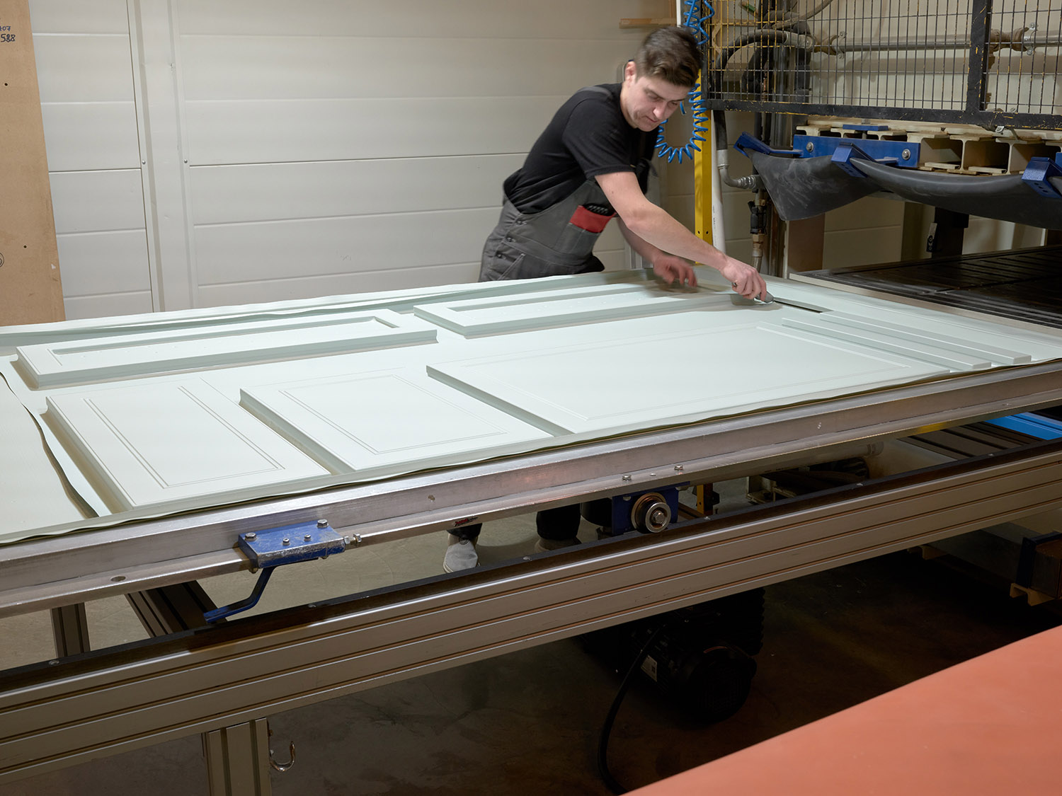 Технология «Трёхмерное окутывание» (3D-окутывание) — плотный, экологически безопасный немецкий гибкий пластик полностью окутывает заготовку фасада из МДФ в итальянском вакуумном прессе.