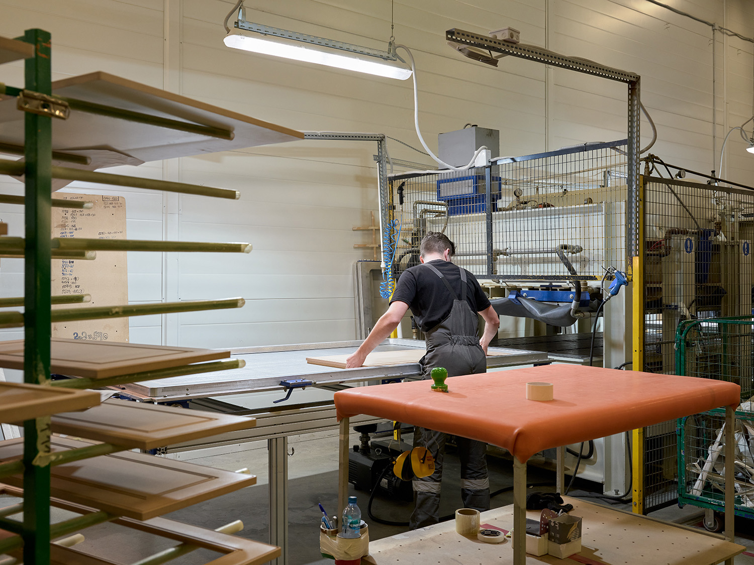 Корпус собираем на отдельном конвейере по технологии без саморезов и гвоздей. Каждый модуль попадает в специальный пресс, что гарантирует безупречную точность и идеальную геометрию конструкции.