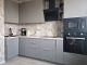 Большая П-образная графитово-белая кухня