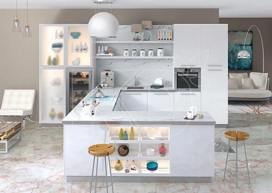 Для просторных кухонь подойдут кухни П-образной формы, модели с островом, полуостровом, практичной барной стойкой. Качественная белая мебель с глянцевыми фасадами прослужит долго, а интерьер при желании можно будет легко преобразить, добавив несколько ярких деталей декора.