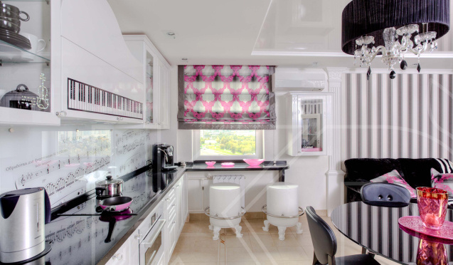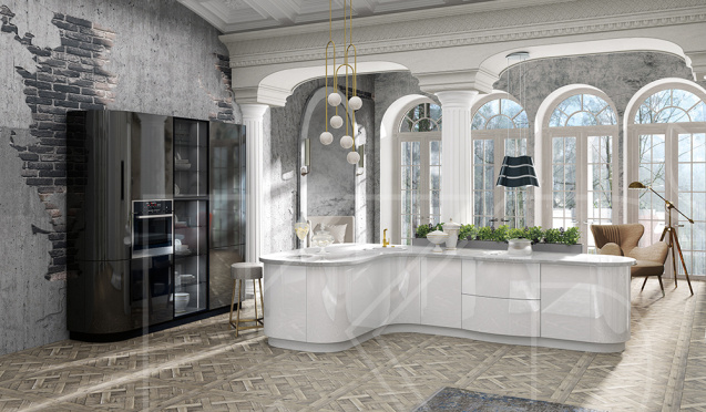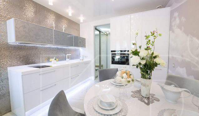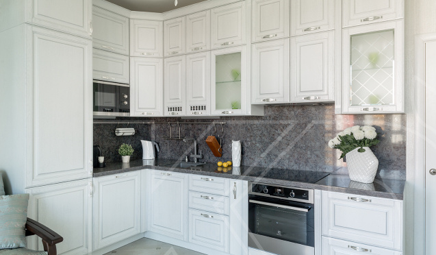 Для просторной квартиры с большими окнами и высокими потолками подойдет классическая белая кухня. Модель такого типа можно узнать по симметричным линиям, простым формам и роскошному декору. Фасады кухонной мебели в стиле классика оформляют лепниной, позолотой, резными узорами, патиной.