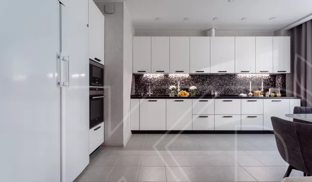 Если монохромные версии кажутся вам слишком скучными, используйте кухни на заказ с бежевыми вставками. Два светлых оттенка гармонично дополнят друг друга, а интерьер будет выглядеть более эффектно.