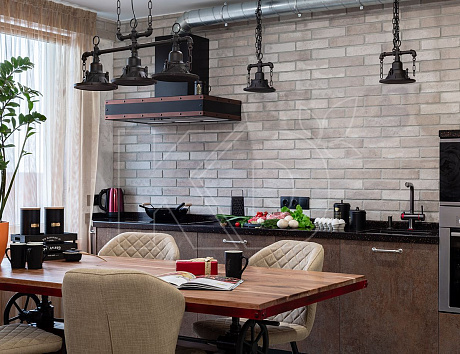 • Открытые коммуникации. Большие кухни в стиле лофт позволяют отказаться от маскировки водопроводных и отопительных труб. При этом открытые коммуникации становятся частью интерьера и смотрятся весьма гармонично.
