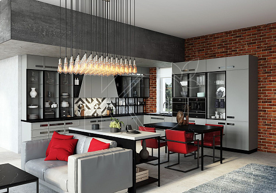 • Варианты в духе хай-тек узнаваемы по правильным прямоугольным формам, глянцевым фасадам, наличию стальных элементов. Подобные кухонные гарнитуры вмещают в себя мультиварки, комбайны, высокотехнологичные плиты.