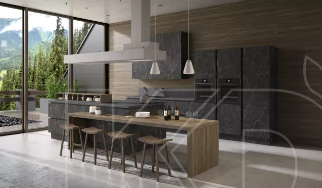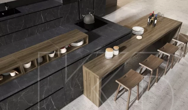 Островная кухня — популярный вариант кухни в черном цвете с центральным островом, который служит рабочей станцией и местом для хранения. Кухня с островом хорошо смотрятся в больших помещениях и обеспечивают достаточно много места для приготовления пищи.