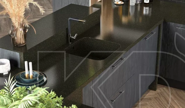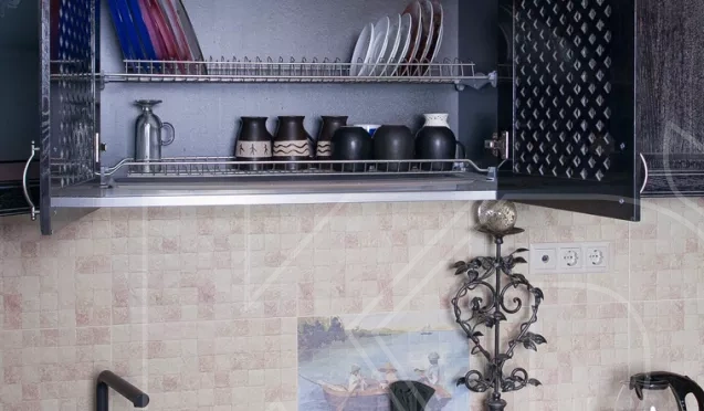 • Серый — универсальный цвет, который хорошо сочетается с черным. Он может создать тонкий, утонченный вид при использовании в качестве столешницы или фартука. Серые шкафы в сочетании с черными столешницами или черной бытовой техникой будут отлично смотреться на современной кухне.