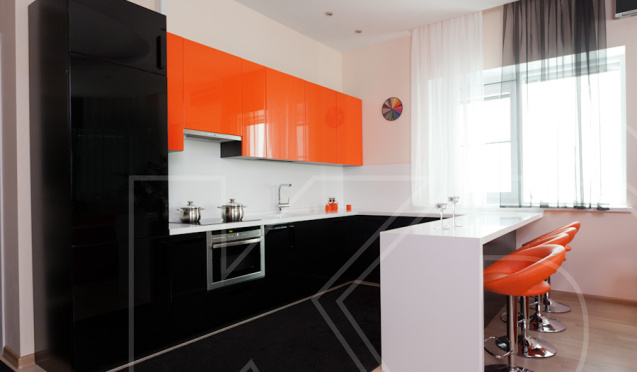 • Сочетание черного с яркими цветами, такими как красный, синий или зеленый поможет заявить о себе. Яркая акцентная стена или красочные аксессуары создадут игривую, веселую атмосферу на Вашей кухне.