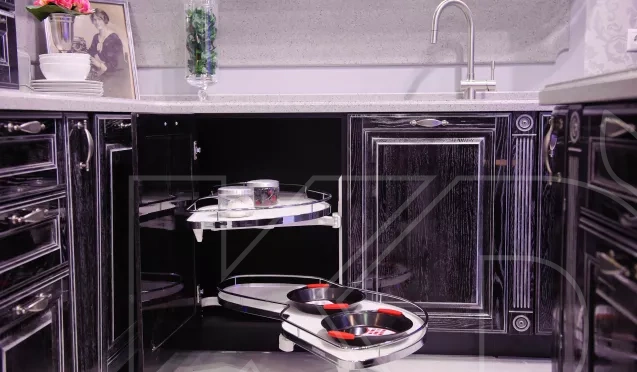 Угловой кухонный гарнитур черного цвета характеризуется современным дизайном с угловатыми шкафами и столешницами, которые создают смелый и яркий вид. Такую угловую кухню можно персонализировать с помощью различных текстур, отделки и материалов – матовые черные шкафы или блестящие черные столешницы помогут создать уникальное и индивидуальное пространство.