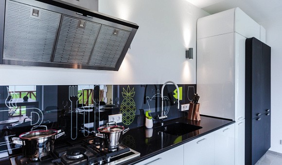 Кухни в черных тонах в стиле хай-тек нередко напоминают секретную лабораторию или космический корабль. В них приветствуют хромированные элементы. Лучше всего выбирать последние новинки в технике с сенсорными элементами управления.