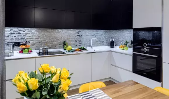 Черная кухня – один из актуальных трендов, который можно использовать в качестве основы дизайнерского решения. Такой вариант выглядит неординарно и шикарно на большой площади, например, в квартирах с планировкой студии. Для небольшого помещения подойдет комбинированный вариант кухонного гарнитура, дополненный: