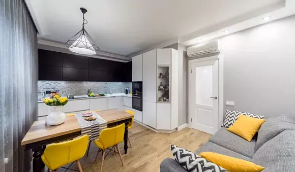 - любая современная кухня черного цвета обладает привлекательным внешним видом, если предварительно объединить ее с имеющейся гостиной комнатой либо использовать в качестве проходной.