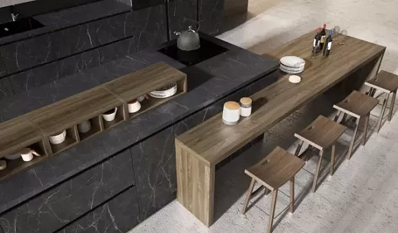 По мнению психологов, кухни в черных тонах оказывают положительное воздействие на психику человека. При этом существенно повышается мотивация к развитию персонального творческого потенциала и гарантируется максимальный уровень концентрации.