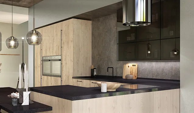 Широкое применение плита на кухне нашла во всем мире, где ее ценят не только эстетические качества этого универсального материала, но и возможность использовать более бюджетные комплектующие при обустройстве и стилизации современных мебельных фасадов с имитацией спила натуральной древесины и шпона.