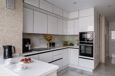 В больших помещениях устанавливают П-образные комплекты. Это отличный вариант для готовки всей семьей или дружеской компанией. Также для просторных комнат подходят модели с барными стойками: классическими, двухуровневыми, совмещенными.