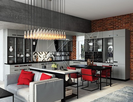 • Эффектный внешний вид. Гарнитур в серо-темных тонах, темно-коричневых тонах, темно-синих выглядит современно и привлекательно. Такое решение подчеркивает смелость и отличный вкус владельцев, приковывает взгляды гостей.