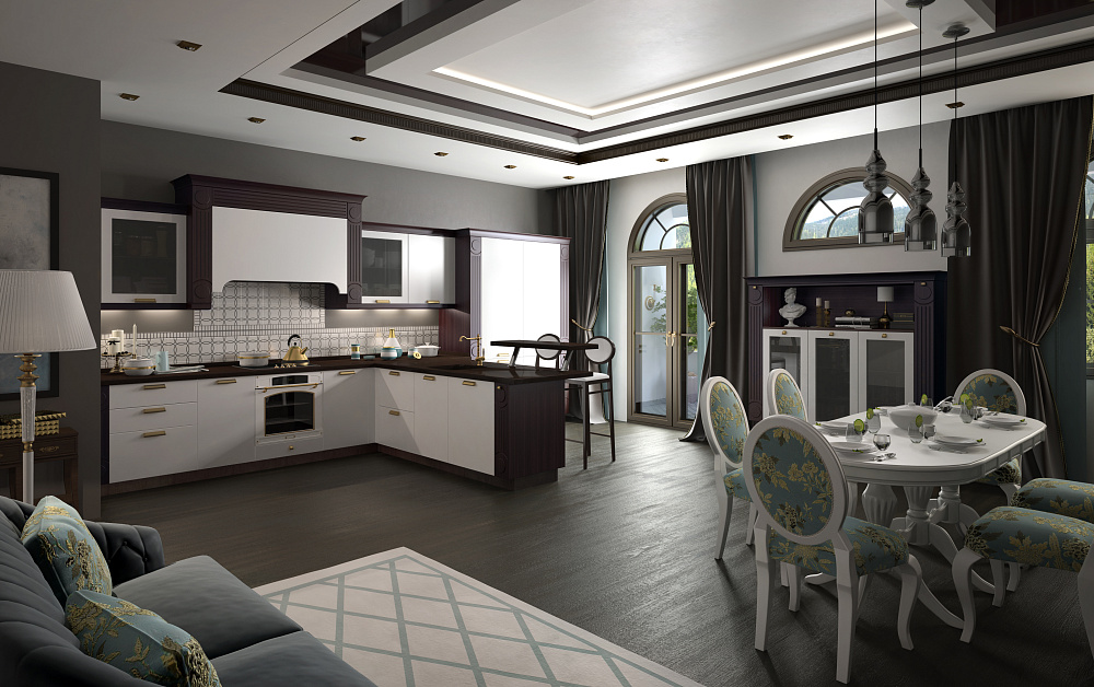Если есть возможность, установите над столом для приема пищи навесные светильники. Благодаря этому приему обеденная зона будет смотреться особенно эффектно.