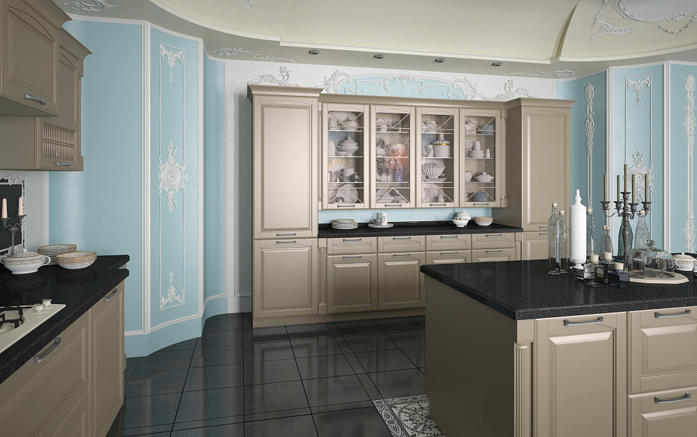 Выбирая оттенок для просторной кухни, учитывайте ее местоположение. Для комнаты на северной стороне подойдут ярко-желтые, оранжевые, бежевые комплекты. Такая мебель сгладит недостаток естественного освещения. Для помещений, расположенных в южной части, дизайнеры рекомендуют зеленые, синие, фиолетовые модели. Подобные расцветки визуально охлаждают помещение.