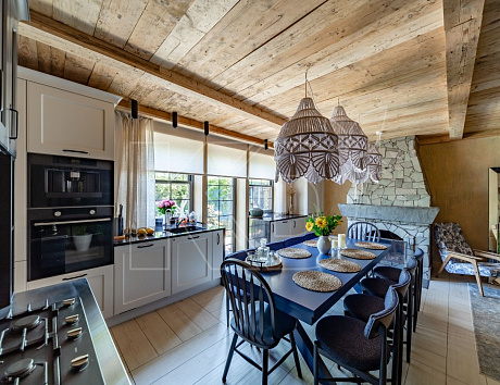 Большая кухня в частном доме открывает массу возможностей для творчества. При ее оформлении можно использовать самые разные материалы, в том числе натуральные, создавать необычную мебель на заказ и покупать яркий декор. Сегодня предлагаем поговорить об особенностях дизайна, цветовой палитре и стилистике такого помещения.