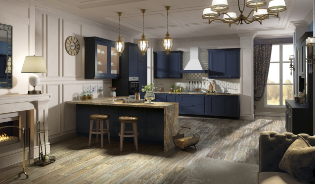Кухни классика. Модели такого типа отличаются четкими и симметричными линиями, простотой форм и роскошным декором. Подобные версии оформляют позолотой, патиной, лепниной, сложными резными узорами. Для производства классической кухонной мебели применяется массив дуба, ясеня и бука. Более доступные по стоимости версии изготавливают из качественного МДФ и экомассива.