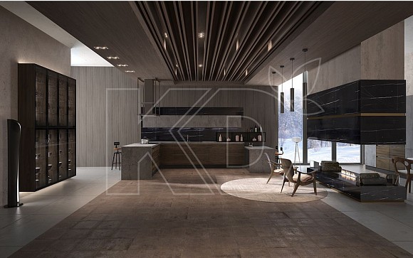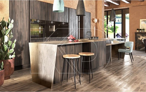 - Широкий спектр материалов. Помимо натурального дерева активно используются МДФ с ламинированными или текстурированными поверхностями. Четкость линий может подчеркиваться фрезеровкой на фасадах. Возможно сочетание нескольких фактур: дополнение МДФ или дерева стеклом, металлическими вставками.