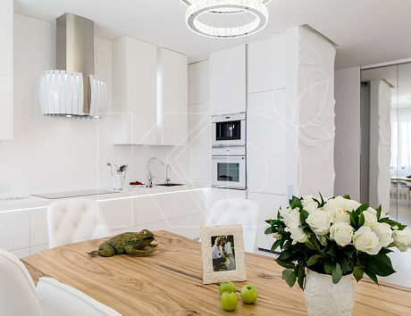 • Кроме солидного внешнего вида, подобные элементы отражают свет и зрительно увеличивают помещение.
