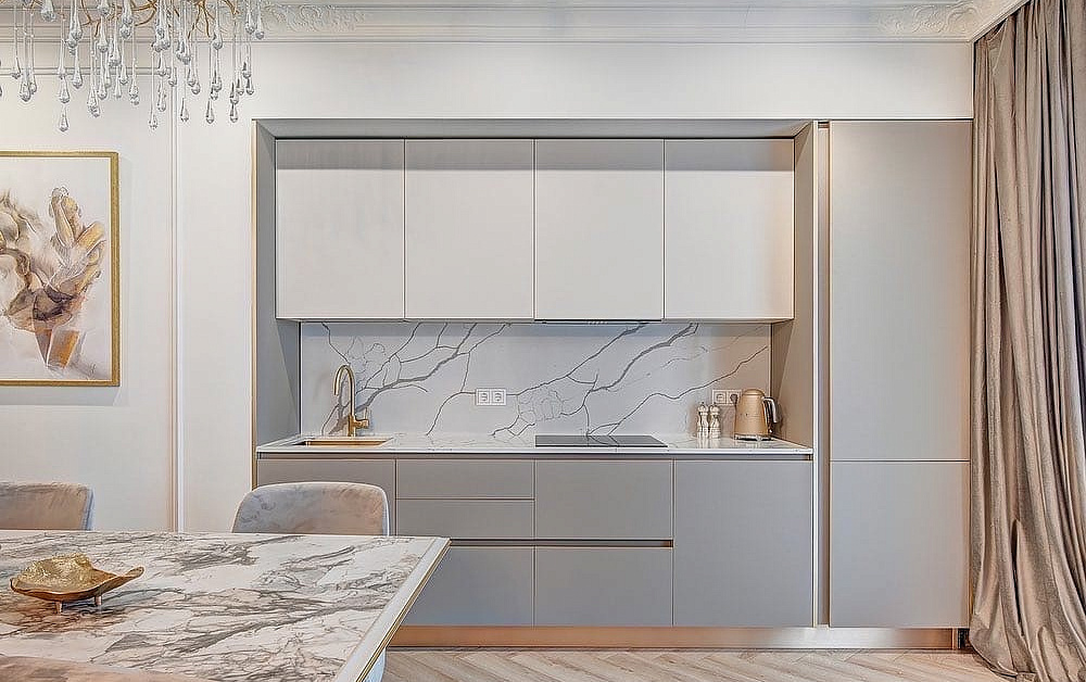 Бежевые оттенки используют при создании кухонных гарнитуров в разных стилях. Но особенно часто в такой гамме выполняют скандинавские, минималистичные, классические и неоклассические кухни.