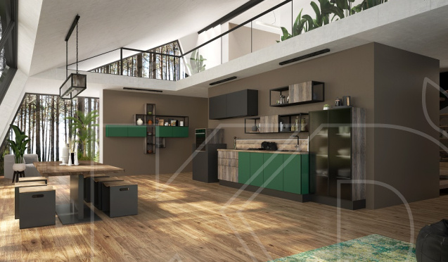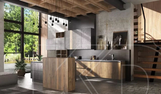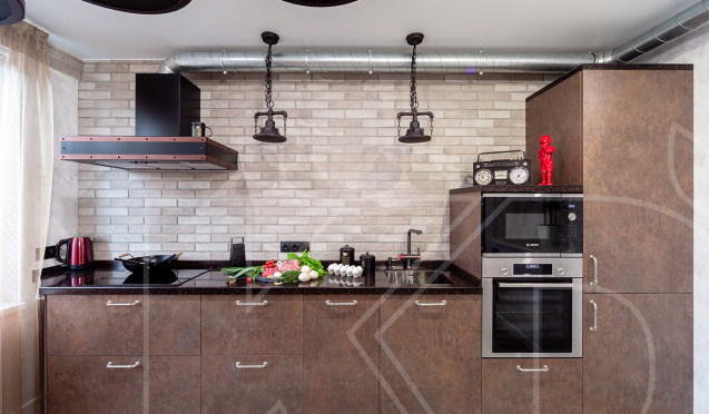 В коричневых оттенках часто выполняют гарнитуры в стиле лофт. Для этого направления характерна простота форм, отсутствие вычурного декора. Для оформления помещения используются картины в духе поп-арт, кирпичная кладка, декоративная штукатурка. Открытые коммуникации тоже выступают как часть дизайна.