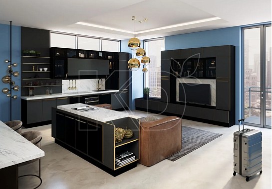 Использование контрастных элементов в интерьере – достаточно распространенный дизайнерский прием. Он позволяет сделать интерьер оригинальным, интересным и ярким. Гарнитуры с фотопринтами обычно изготавливаются из МДФ. Это прочный и надежный современный материал. Дизайнеры любят его за возможность экспериментировать с видами декоративной отделки.