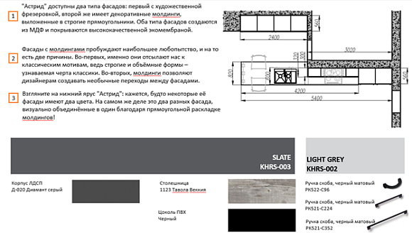 Красивая и удобная кухня – это гарантия приготовления вкусных блюд и отличного настроения хозяйки дома. Поэтому, важно продумать выбор мебели до мелочей, чтобы каждая деталь сочеталась с общим стилем и создавала особенную атмосферу. Поэтому, кухня в современном стиле «Астрид» это лидер продаж у нашей бренда. Она чудесным образом сочетает в себе классическую красоту и современную практичность, что важно для многих хозяек.