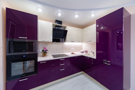 Обычно угловые кухни на заказ рассчитаны на встроенные плиту, холодильник, посудомоечную машину, вытяжку и другую крупную технику. Дополнительно можно позаботиться о фритюрнице, кухонном комбайне, микроволновой печи, домашнем барбекю.