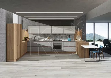 Планировка, при которой модули располагаются в виде буквы «П» вдоль трех смежных стен, обычно используется в больших помещениях. Подобное расположение считается одним из наиболее эргономичных, потому что позволяет придерживаться принципа рабочего треугольника. Холодильник, плита и мойка размещаются на одинаковом друг от друга расстоянии.