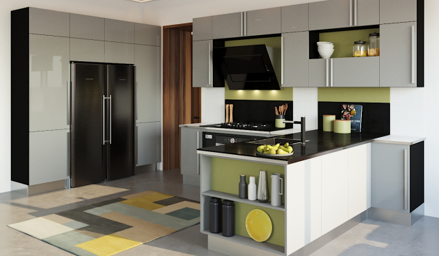 В полуостровных кухнях мебель располагают вблизи двух смежных стен, в то время как другая находится в центральной части помещения. С точки зрения цветов, наибольшей популярностью пользуются: