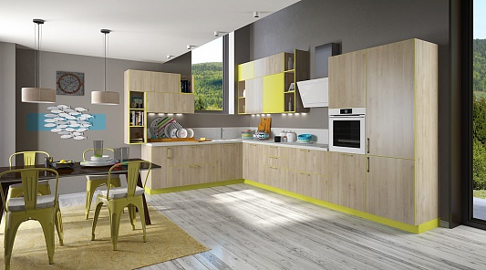 Один из популярных вариантов – угловая кухня. Она хорошо подходит для средних и небольших кухонь, поскольку позволяет эффективно использовать площадь. Ее вполне допустимо установить и в просторном помещении.