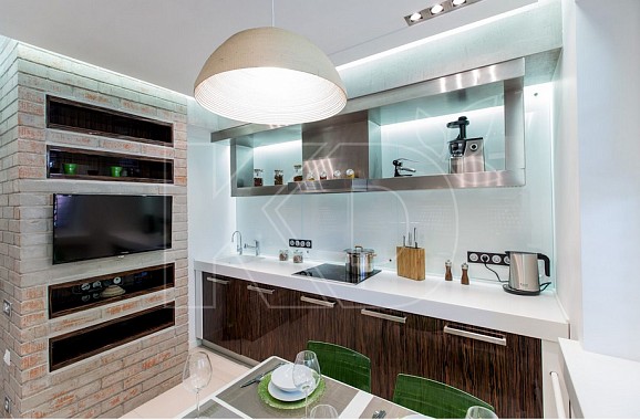 При этом общая высота кухни важна не только с позиции вместительности. Не менее важно, как будут открываться верхние шкафы. Обычно верхний ярус располагается на высоте от 50 до 55 см от столешницы, что при среднем росте позволяет не битья головой об двери шкафов, но при условии, если они не распашные, а оснащены подъемным механизмом. Угол открывания варьируется от 90 до 110 градусов. Последний предпочтительнее для людей высокого роста, так как менее травмоопасен. Еще более интересное решение - это шкафы, открывающиеся параллельно, однако стоимость их повышается за счет использования дорогой фурнитуры.