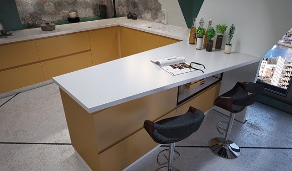 Из каких материалов выполняют кухни в желтых тонах?