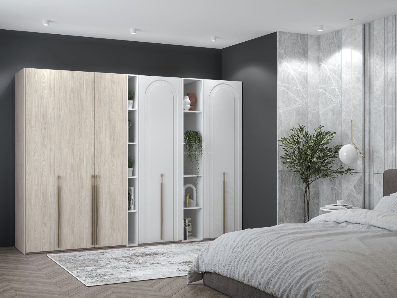 Благодаря продуманной модульной системе, шкаф органично впишется как в классический, так и в контемпорари интерьер, сохранив порядок и эстетику. Это не просто место для хранения — это часть единой, продуманной истории дома, где каждая деталь работает на атмосферу.